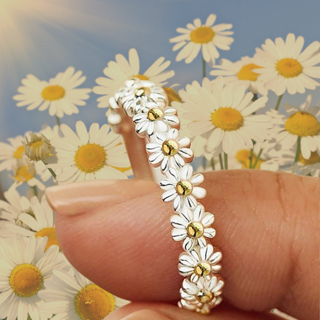 Adjustable Silver and Hand Painted Enamel Daisy Ring